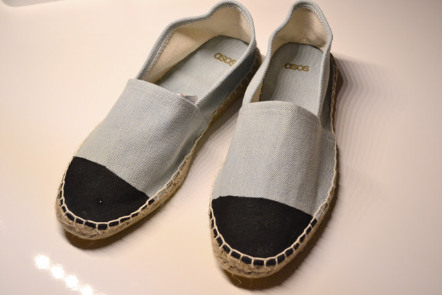 I still had some textil paint from a previous DIY so I've painted the nose of my espadrilles black.
